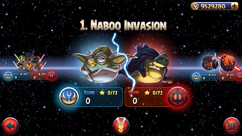 核心玩法还是那个味儿——拉弹弓,砸绿猪。但细节完全不同了,画面充满了星球大战的科幻感,各种光剑、原力技能特效让人眼花缭乱。