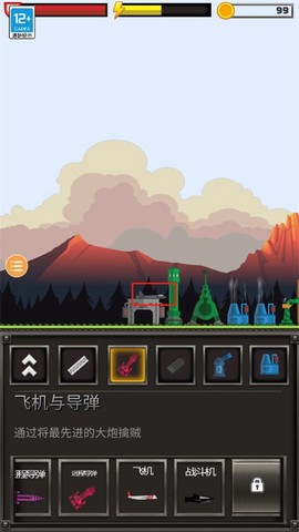 2. 建造完毕后点击飞机进入操控界面,界面下方陈列各类弹药可供采购。