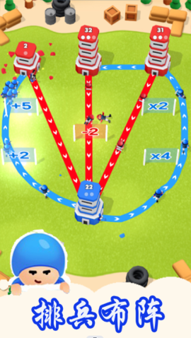 2. 让小兵穿越屏障获取增益效果,解决各类难题,挑战层层加码,保证你玩得停不下来。