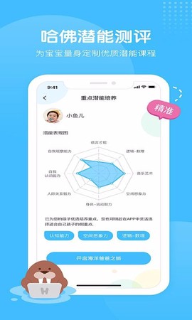 在育儿的旅途中,有一个强有力的助手可以让你事半功倍,那就是海洋爸爸。这款儿童教育类资源软件在打开时,就为你展示了其显著的作用说明,涵盖了潜能表现图,以及认知能力、空间想象力和逻辑数理能力的培养。点击进入“开启海洋爸爸之旅”,你将踏入首页,探寻丰富的内容,其中包括儿歌、故事、电台和育儿知识专区,简直是家长的育儿宝典!每周的听书栏目更是为用户推送了精选的书籍资源,帮助宝宝收听海量故事,为他们的想象力插上翅膀。与此同时,还可以通过育儿60秒栏,获取实用的育儿方法和知识,学习如何成为更好的父母。