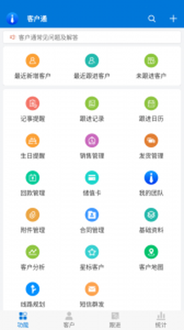 1、客户通app是为销售和业务助理等客户管理相关人员量身打造的工具,提供了新增客户、导入客户、名片扫描、新增销售、新增跟进等强大功能,真正让客户信息的管理变得轻松,显著提高工作效率。