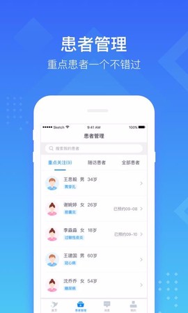 2. 点击进入患者管理中心,快速查看重点关注患者,锁定目标就像瞄准镜开镜。